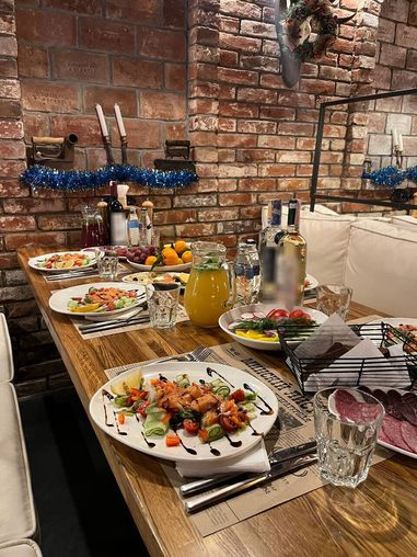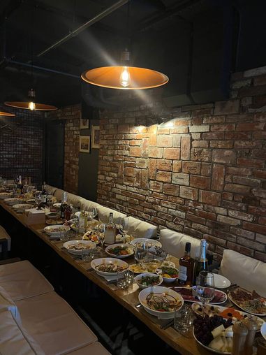 Проведение коллективных мероприятий. Возможность размещения до 22 человек за одним большим столом, живая музыка, фото и видео банкетов.