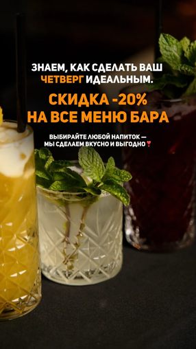 Скидка 20% на барное меню по четвергам