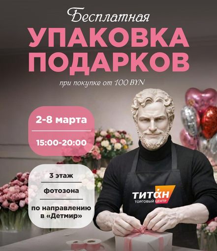 — Совершите покупку подарка на сумму от 100 BYN в любом магазине, представленном в ТРЦ Титан☑️