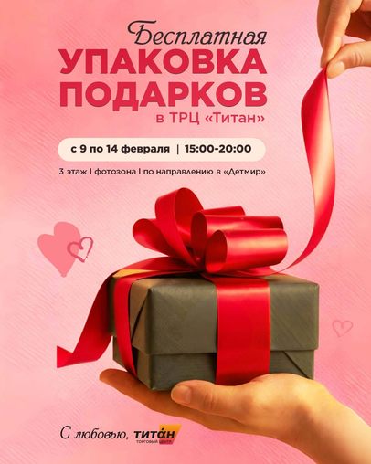 Время работы пункта бесплатной упаковки: с 09.02.2026 по 14.02.2026, с 15:00 до 20:00.