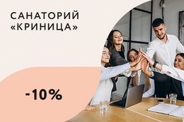 Друзья, теперь при приобретении путевки с лечением в санатории «Криница» членам Московской Федерации профсоюзов, входящих в Федерацию Независимых профсоюзов России (ФНПР), предоставляется скидка в размере 10% (за счет собственных средств, а также средств организационных структур этих профсоюзов и (или) нанимателей).