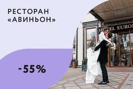 При проведении торжества в ресторане «Авиньон» в Отеле «Европа» на проживание в номере Кинг сайз «Делюкс» скидка 55%.