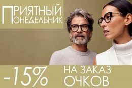 Каждый понедельник для Вас действует скидка 15% на заказ очков + бесплатная проверка зрения.