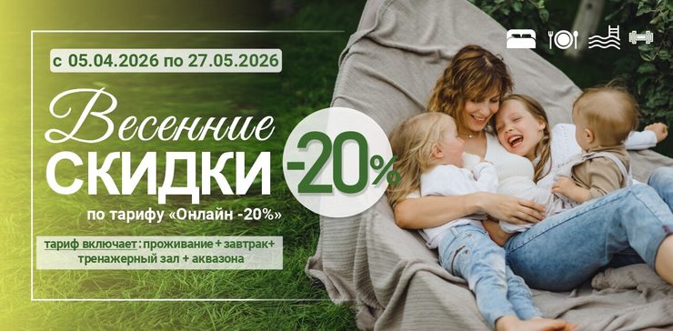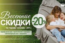 Действует специальное предложение — скидка 20% на проживание по тарифу «Онлайн-тариф -20%».
